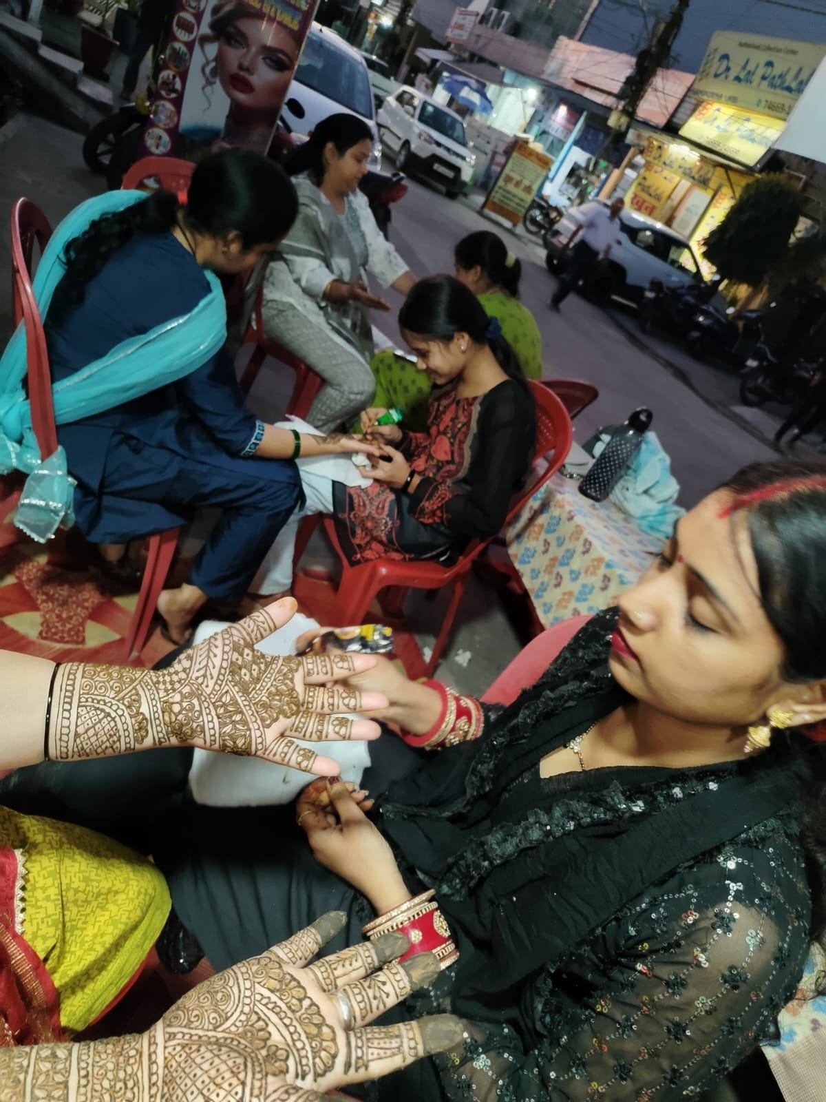 हिमांशी , रिदम, पीकू, डोली , संध्या द्वारा पूरे शिवालिक नगर पालिका व आसपास के सैकड़ों सनातनी महिलाओ के हाथों मे मेंहदी लगायी गयी।