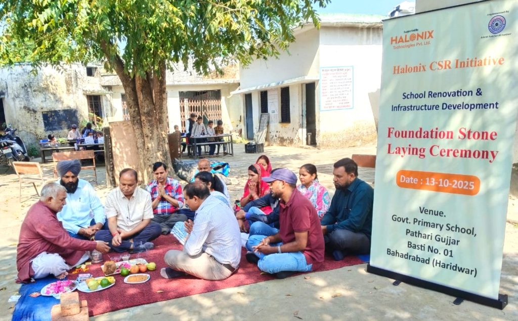 हरिद्वार, – हैलोनिक्स टेक्नोलॉजी प्राइवेट लिमिटेड के कॉर्पोरेट सामाजिक उत्तरदायित्व (सीएसआर) के अंतर्गत आदर्श युवा समिति हरिद्वार द्वारा, राजकीय प्राथमिक विद्यालय गुर्जर बस्ती पथरी भाग-01 में विद्यालय भवन सौंदर्यीकरण कार्य का शिलान्यास किया गया।