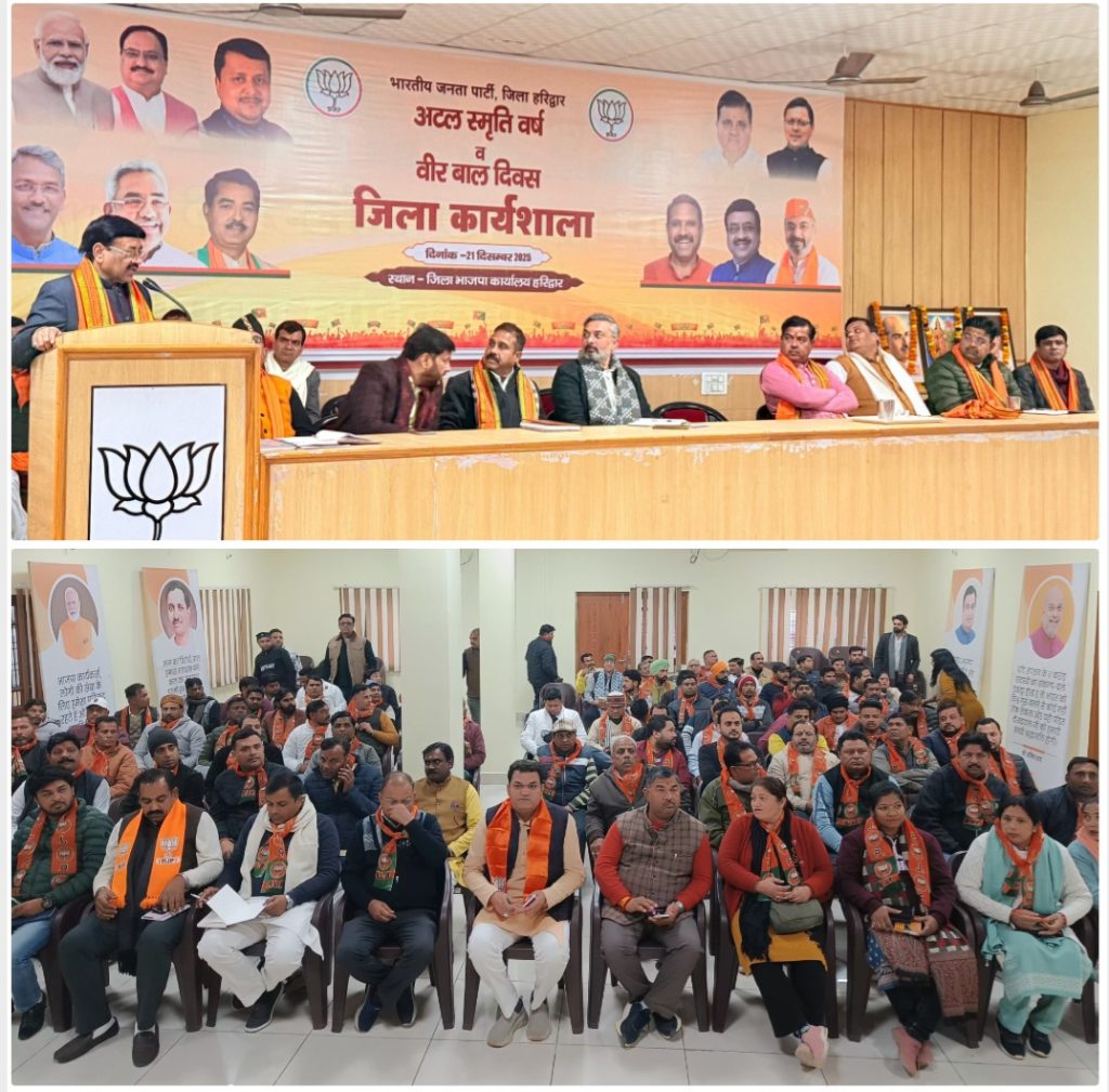 हरिद्वार भारतीय जनता पार्टी जिला कार्यालय जगजीतपुर हरिद्वार पर अटल स्मृति वर्ष व वीर बाल दिवस पर आयोजित होने वाले कार्यक्रमों की जिला कार्यशाला का आयोजन किया गया। जिला कार्यशाला की अध्यक्षता जिला अध्यक्ष आशुतोष शर्मा और संचालन जिला महामंत्री संजीव चौधरी और हीरा सिंह बिष्ट ने किया। कार्यक्रम में मुख्य वक्ता प्रदेश उपाध्यक्ष और जिला प्रभारी अनिल गोयल जी रहे।