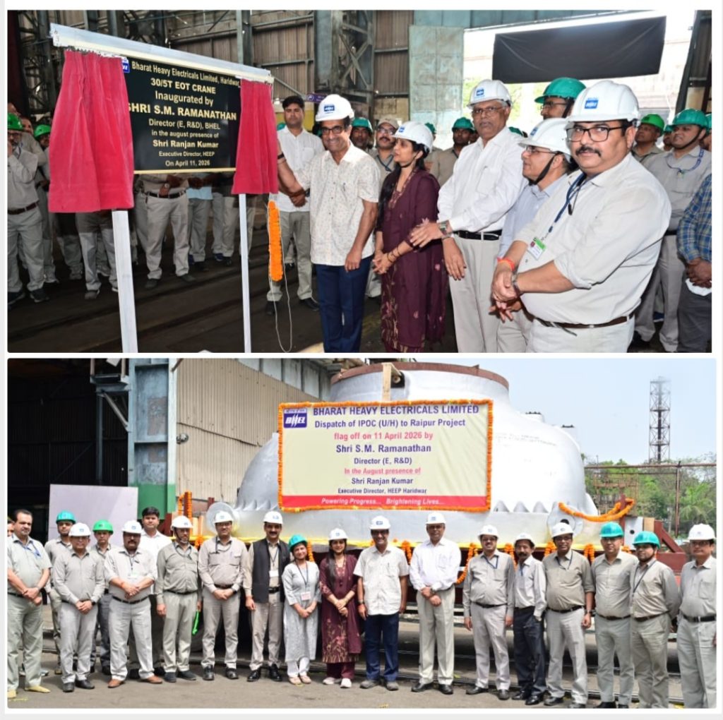 हरिद्वार, 11 अप्रैल 2026 बीएचईएल हरिद्वार ने अदाणी पावर लिमिटेड के 800 मेगावाट क्षमता के, रायपुर सुपर क्रिटिकल थर्मल पावर प्लांट की यूनिट-1 हेतु, आईपी आउटर केसिंग का निर्माण कार्य सफलतापूर्वक पूरा कर लिया है । बीएचईएल के निदेशक (ई, आरएंडडी) श्री एस. एम. रामनाथन ने, हरिद्वार इकाई के कार्यपालक निदेशक श्री रंजन कुमार की उपस्थिति में, हरी झंडी दिखाकर केसिंग को रवाना किया ।