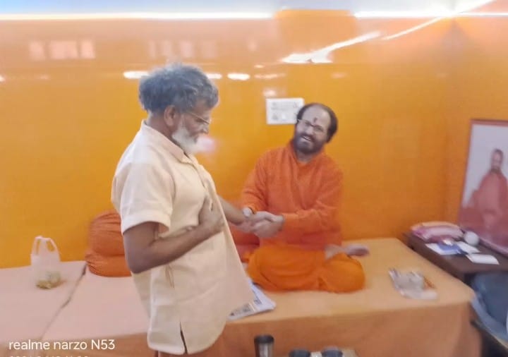 हरिद्वार भूपतवाला सप्त सरोवर रोड निकट गीता कुटीर स्थित श्री दीप्ति कुटीर आनंद वन के परमाध्यक्ष प्रातः स्मरणीय महंत योगेश्वरानन्द सरस्वती महाराज ने भक्तजनों के बीच अपने श्री मुख से उद्गार व्यक्त करते हुए कहा संत दर्शन से मनुष्य को कई तीर्थ का फल प्राप्त हो सकता है संत महापुरुष इस पृथ्वी लोक पर किसी तीर्थ से कम नहीं तीर्थ के दर्शन करने के लिए आपको स्वयं चल कर जाना पड़ता है किंतु एक संत रूपी तीर्थ के दर्शन आपको कभी भी कहीं भी हो सकते हैं संत इस पृथ्वी लोक पर साक्षात ज्ञान की त्रिवेणी के रूप में स्थापित है संत महापुरुषों के श्री मुख से बहने वाली ज्ञान की सरिता में गोते लगाने से मनुष्य के जीवन का उद्धार हो जाता है और जो मठ मंदिर आश्रमों से शंखनाद होता है वह संपूर्ण सृष्टि में सनातन परंपरा के रूप में प्रवाहित होता है संत दर्शन से कई तीर्थ के दर्शन का फल प्राप्त होता है इसलिए संतों के दर्शन का मनुष्य को हमेशा लाभ उठाना चाहिए और उनके वचनों को सुनकर अपने जीवन में धारण कर अपने जीवन का उद्धार करना चाहिए