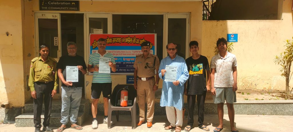 फायर स्टेशन रुड़की जनपद हरिद्वार दिनांक 19/04/2026 श्रीमान उच्च अधिकारियों के आदेश एवं निर्देश के अनुपालन के क्रम में प्रभारी अग्निशमन अधिकारी महोदय रुड़की श्री उदयवीर सिंह यादव के नेतृत्व में टीम द्वारा फायर स्टेशन रुड़की क्षेत्रांतर्गत पड़ने वाली सोसायटी मल्टीप्लेक्स बिल्डिंग गुलमोहर सोसायटी ईशान सोसायटी चौधरी सोसायटी एंड हाउसिंग टावर डिवाइन सोसायटी मल्टीप्लेक्स बिल्डिंग में जाकर प्राथमिक अग्निशमन उपकरणों की प्रयोग विधि एलपीजी सिलेंडर लिकेज से होने वाली अग्नि दुर्घनाओं के बारे में विस्तार से बताया गया ऐसे स्थान पर बहुत अधिक मात्रा में लोग निवास करते हैं ऐसे स्थान पर प्राथमिक अग्निशमन उपकरणों का उच्च कोटि एवं कार्यशील दशा में रखें समय-समय पर अभ्यास कार्यक्रम आयोजित करते रहे